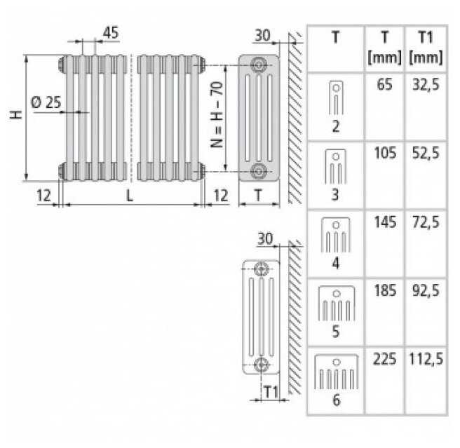 Arbonia 2180 6 секций, подключение боковое N12