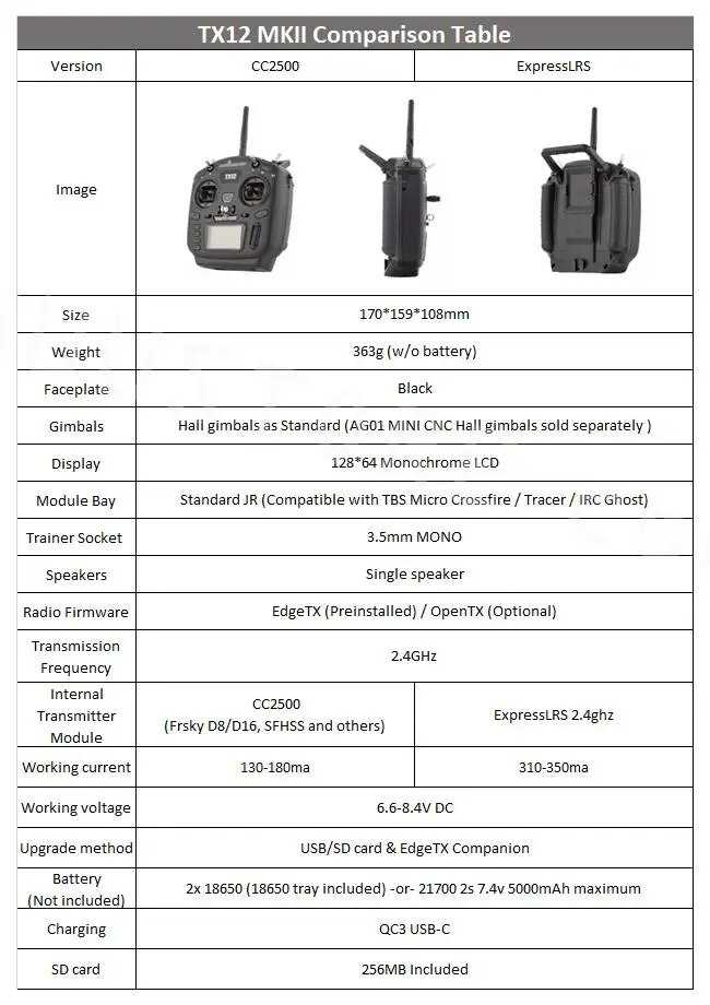 Характеристи Radiomaster TX12 MKII (CC2500)