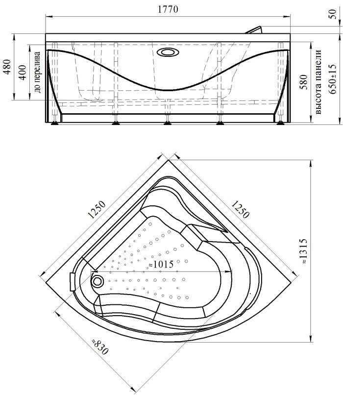 Подробная комплектация : | Ванна на металлическом каркасе с фронтальной панелью |
