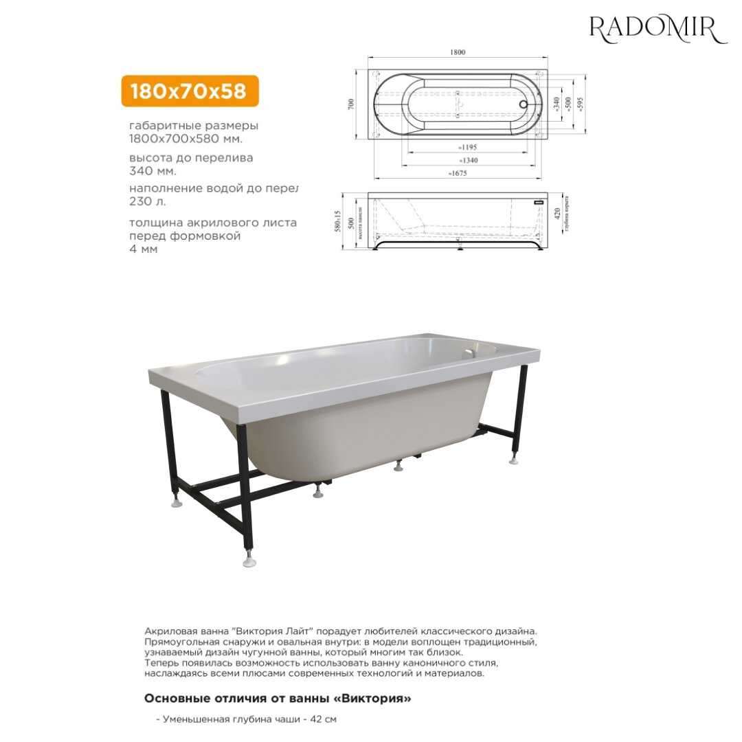 Отзывы о Акриловая ванна Радомир Виктория лайт (165х70х42)