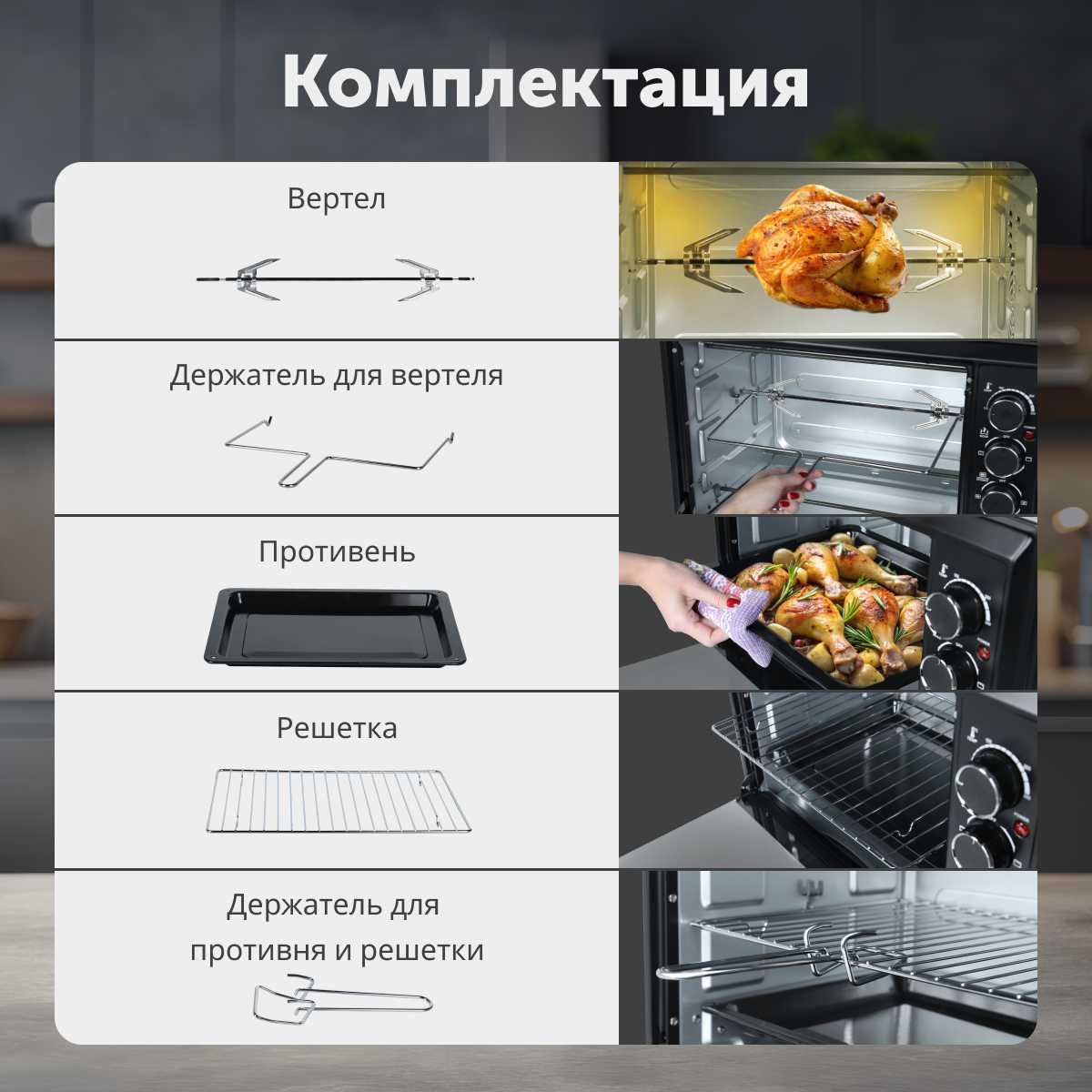 В комплекте : | поддон для сбора крошек, противень, решётка |