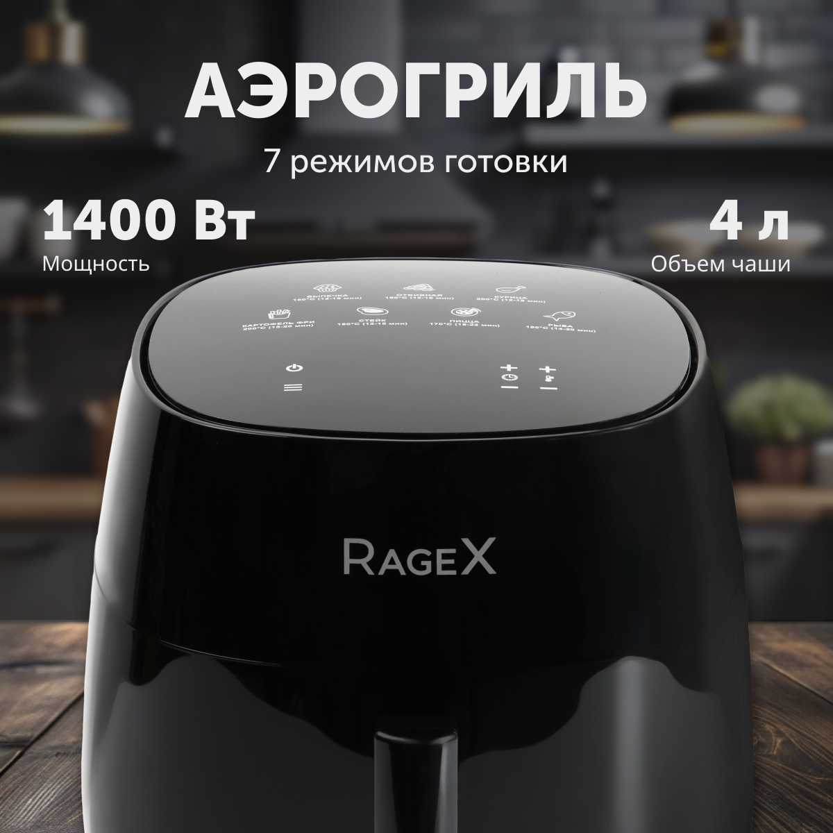Отзывы о Аэрогриль RageX R202-000, 7 в 1, объем 4 литра, 1400Вт, черный