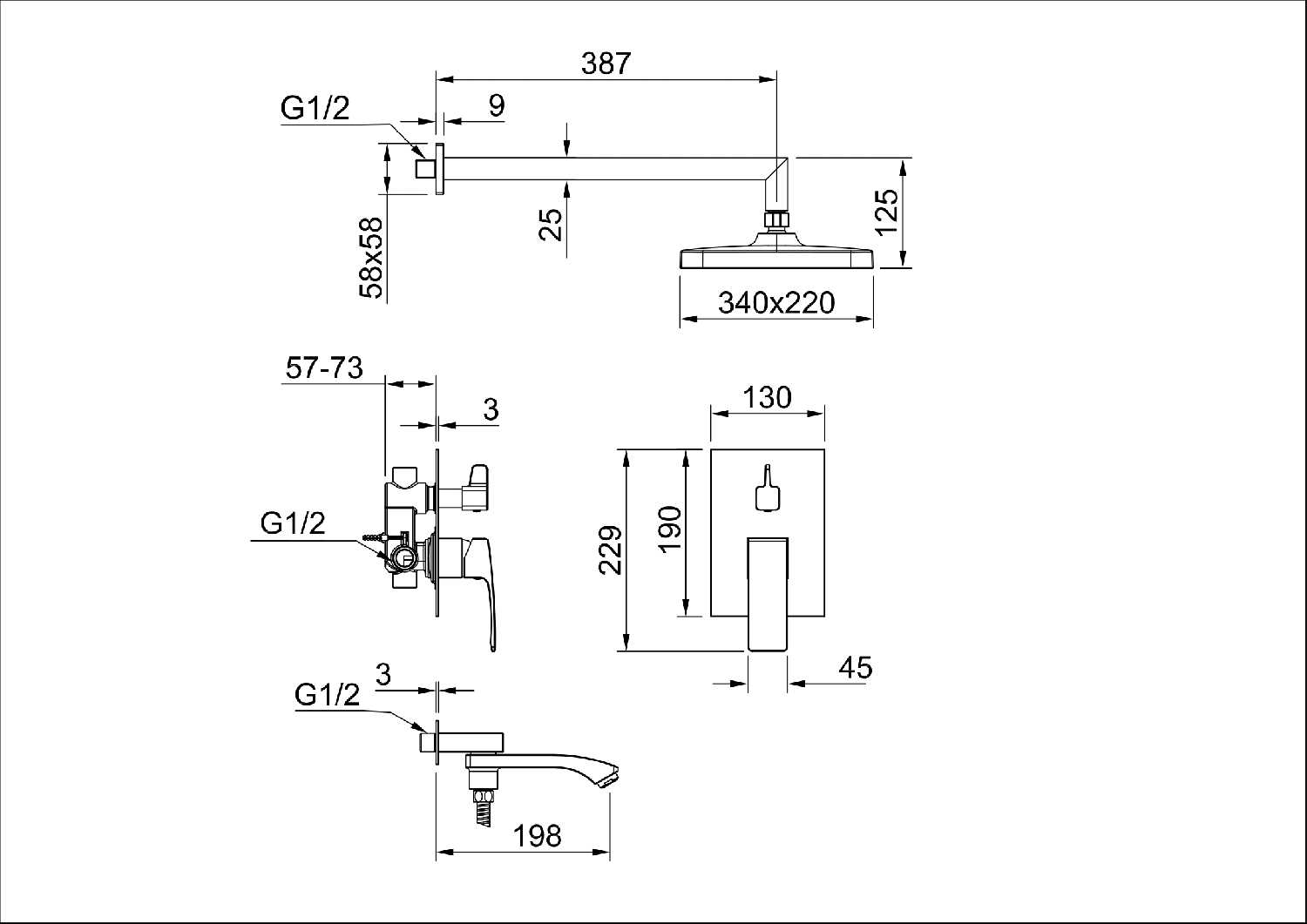 | Комплектация : | верхний душ, гусак, держатель лейки, дивертор, душевая стойка, душевая штанга, излив для набора воды, кронштейн для верхнего душа, лейка, набор эксцентриков, настенный держатель, отражатель, переключатель потоков, прокладки, ручной душ, смеситель, шланг, эксцентрик |