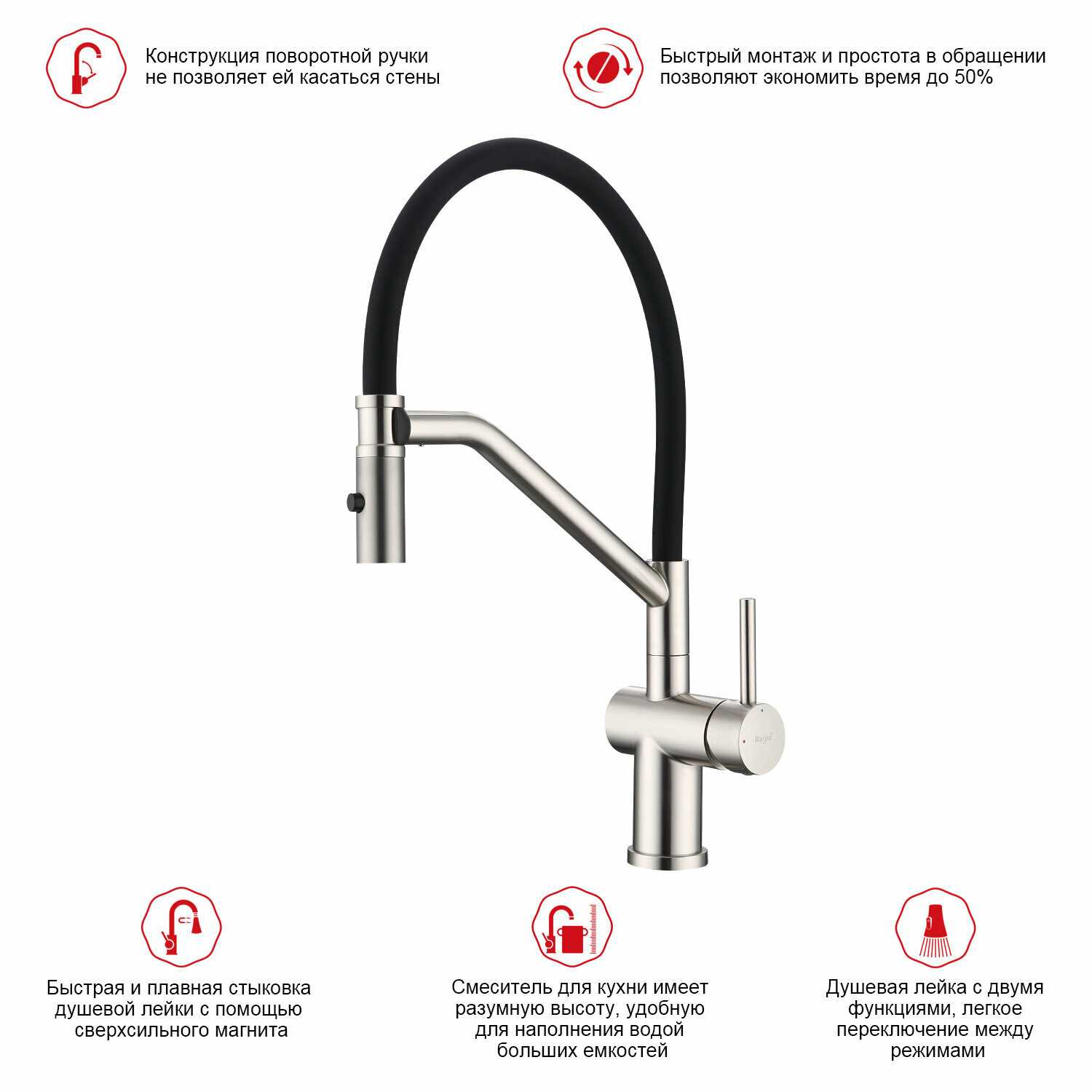 - + Красивый и качественный кран. Функциональный, есть режим душ. Магнит держит крепко. мне все нравиться.