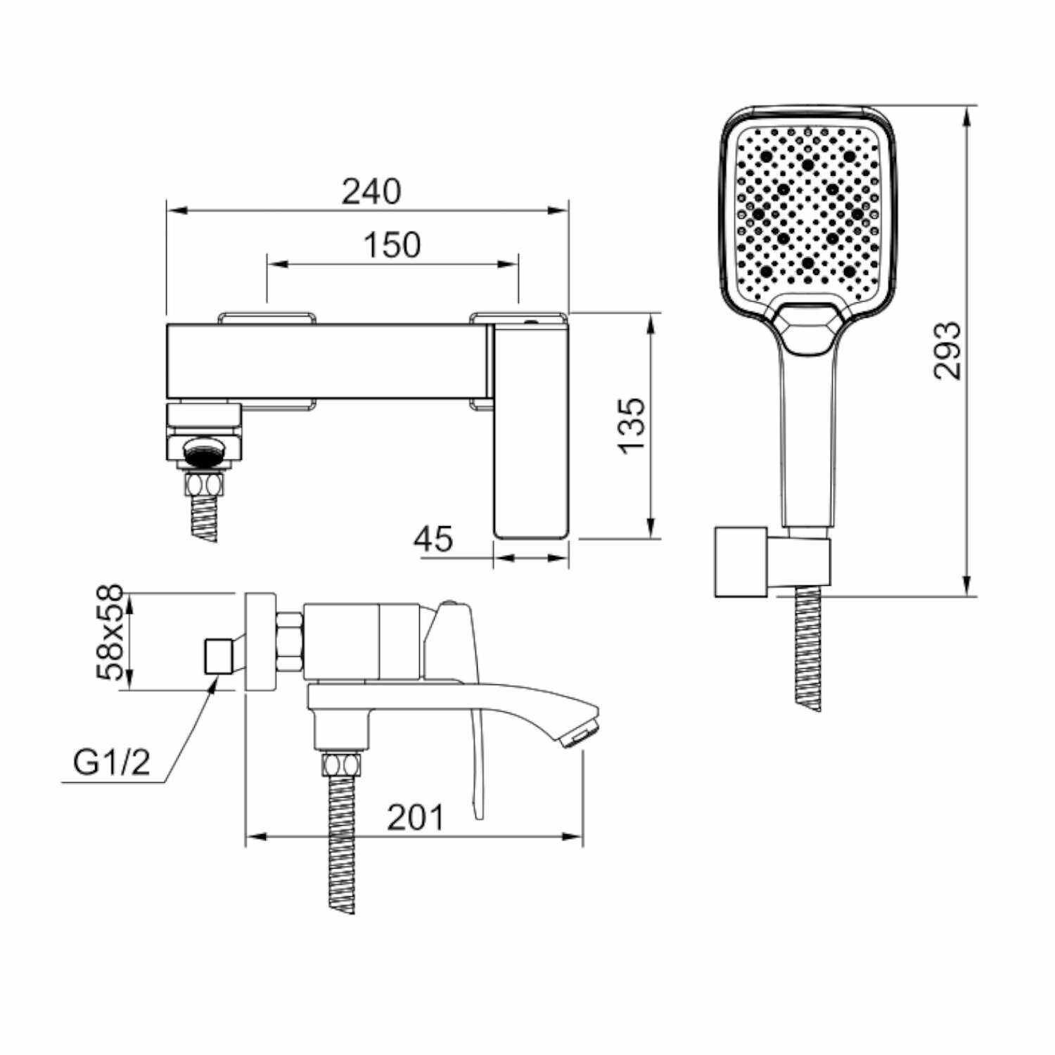 Комплектация : | смеситель, шланг, душевая лейка, держатель душевой лейки, эксцентрики, отражатели |