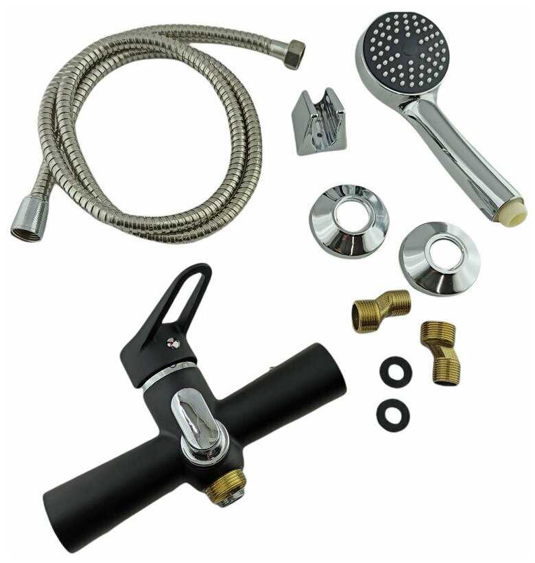 - комплектация: -Смеситель; -Лейка для душа; -Шланг для душа 150 см; -Держатель для лейки; -Отражатели 2шт; -Эксцентрики 2шт.
