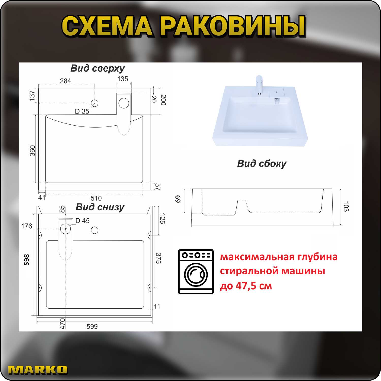 6.2/10 балловMarko Раковина над стиральной машиной Блюз 50