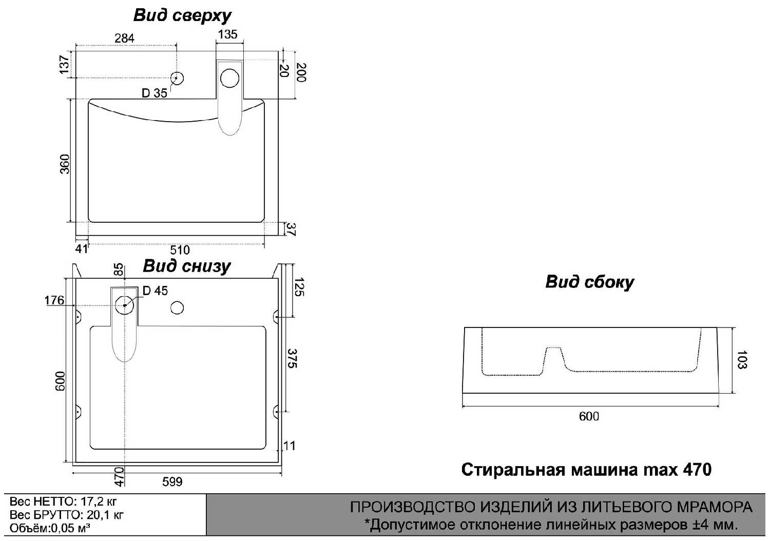 ALTASAN Elita 60х50 см подвесная над стиральной машиной со сливом и кронштейнами