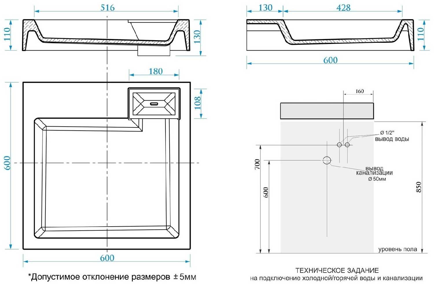 Marrbaxx 600х600х105 над стиральной машиной с кронштейнами б/сифона