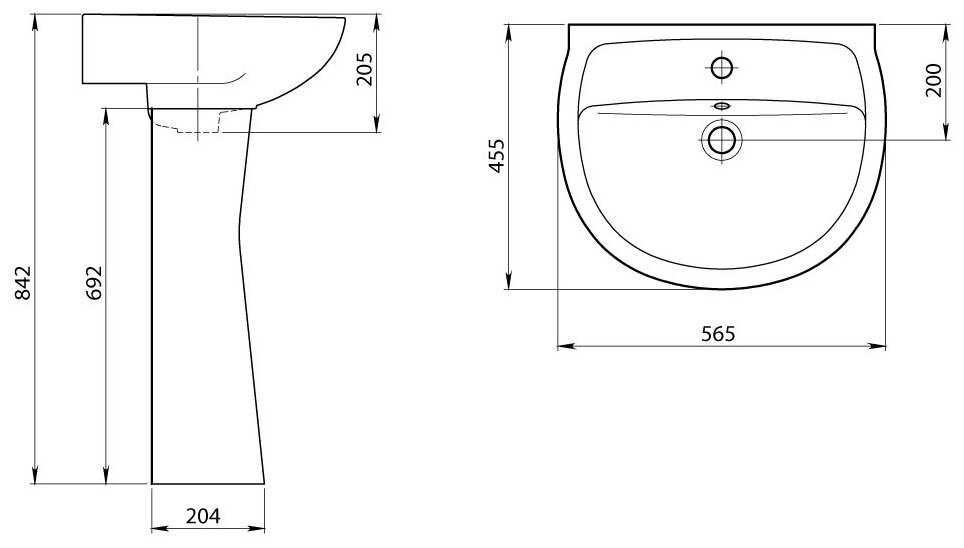 Santeri Умывальник "Pro-56,5" белый с отв., без перелива (г.Воротынск)