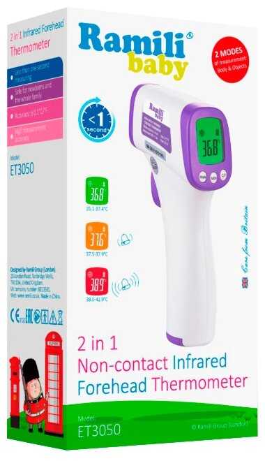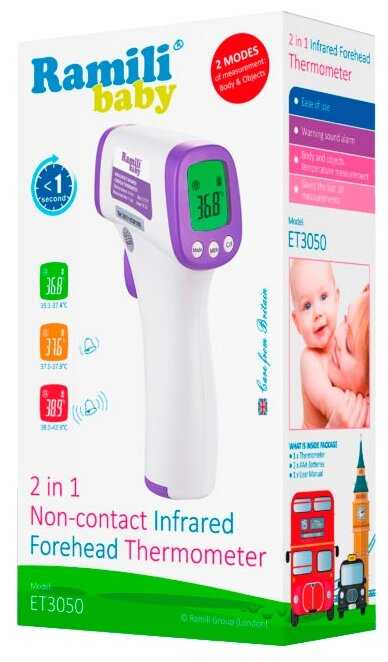 Рамили Baby ET3050 — это современный инфракрасный термометр, сочетающий скорость, многофункциональность и удобство для семей с детьми. Его ключевое преимущество — бесконтактное измерение за 1 секунду, что незаменимо при работе с непоседливыми малышами. Технические параметры, такие как двойной режим (тело/поверхности) и точность ±0,3°C, позволяют использовать устройство не только для медицинских целей, но и для контроля температуры детского питания или воды в ванне. Однако важно учитывать, что корректность показаний напрямую зависит от соблюдения инструкции: расстояние 5–8 см, неподвижность объекта, отсутствие внешних факторов (пот, косметика на лбу).
