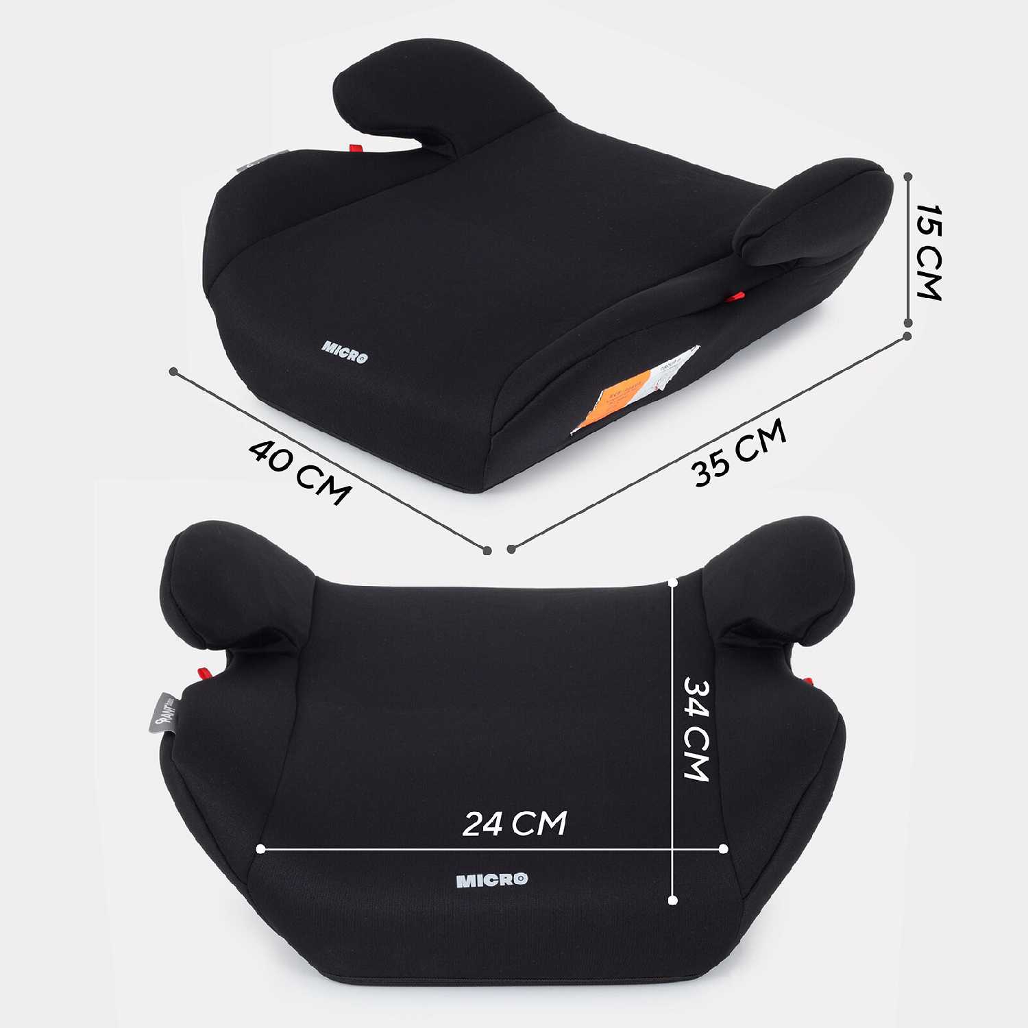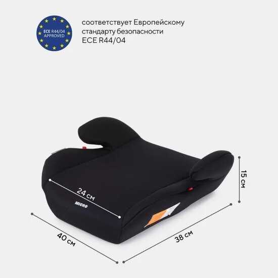 - Оптимальная высота подъёма (15-20 см) обеспечивает правильное положение ремня безопасности на груди ребёнка.