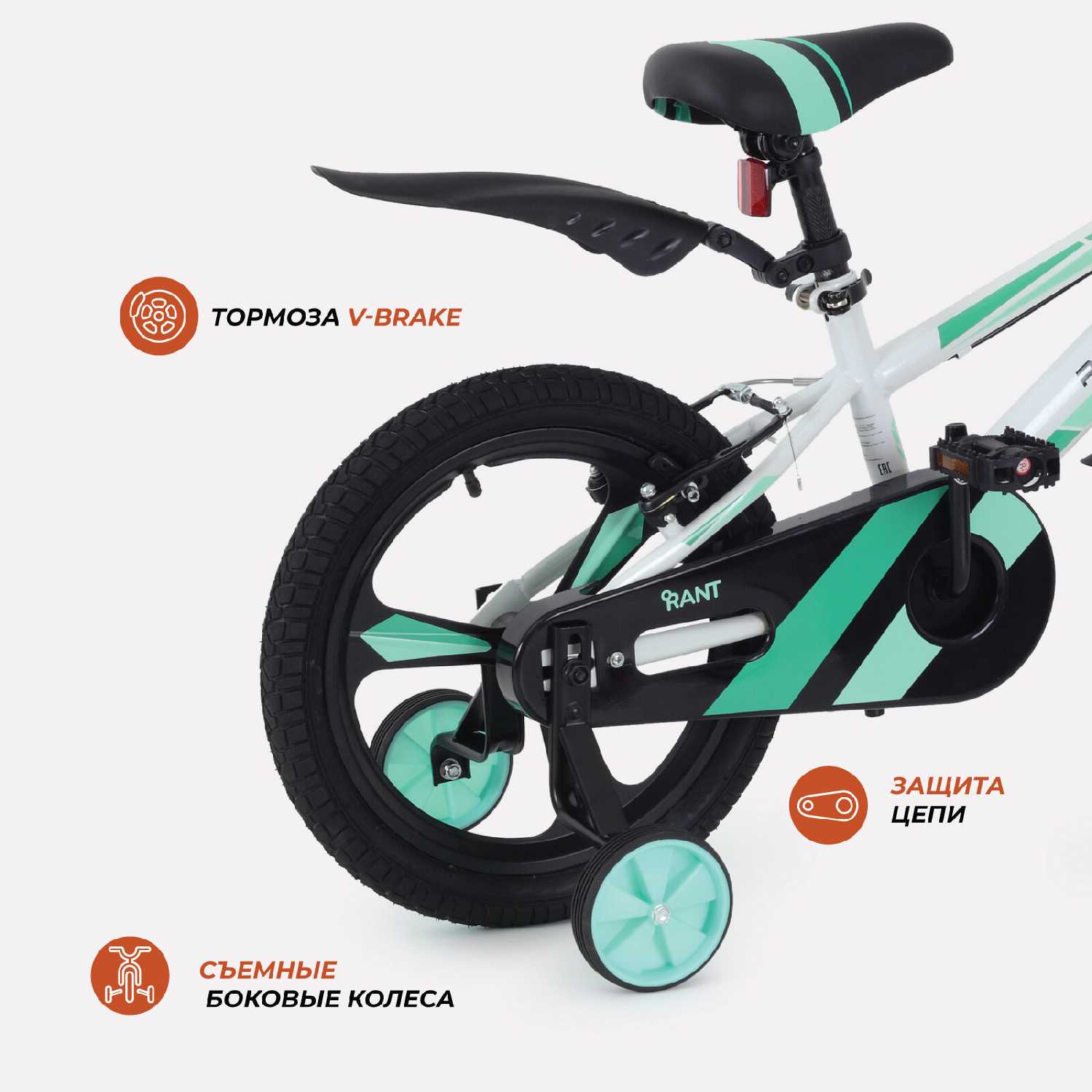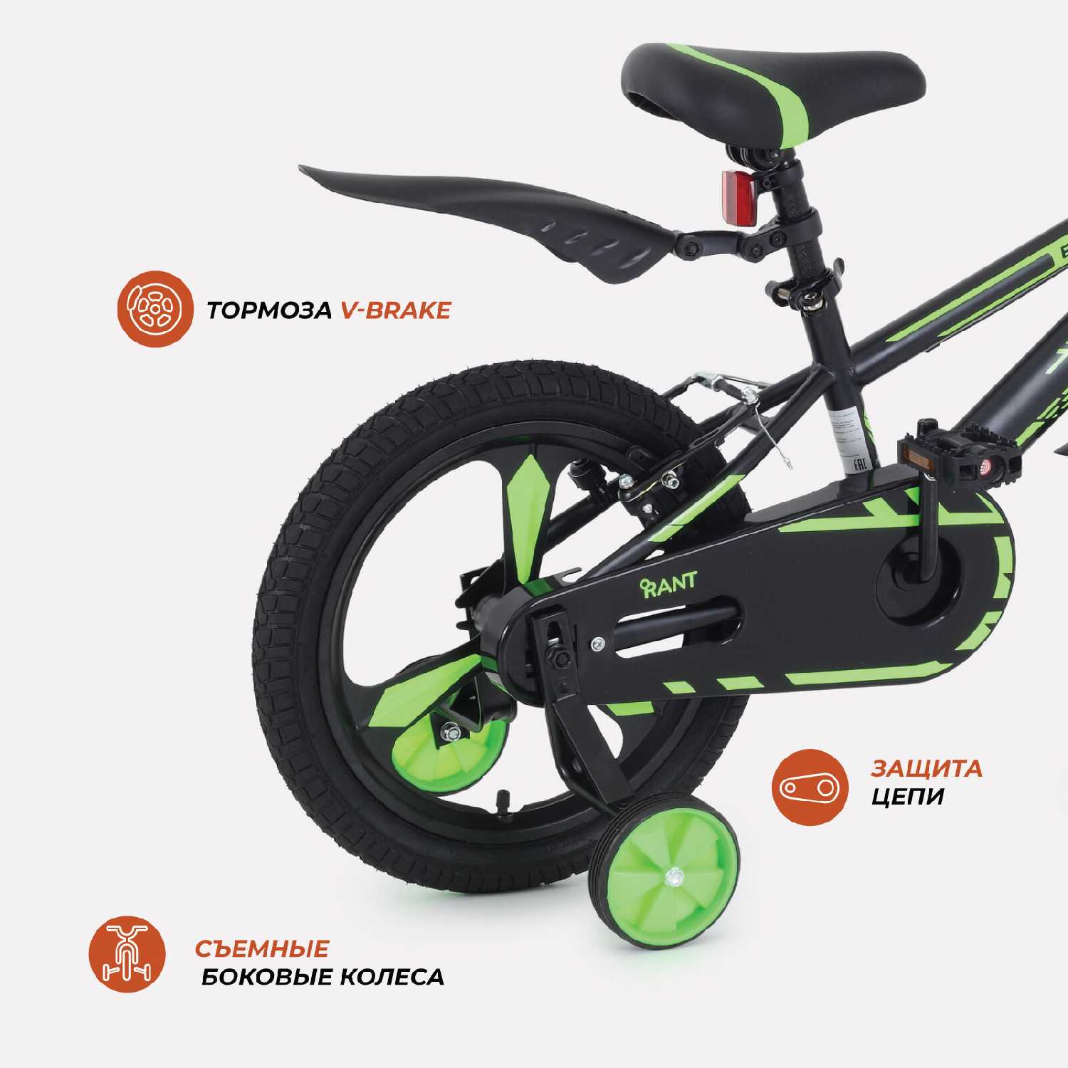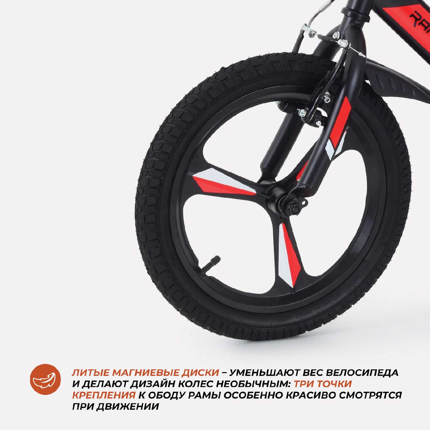 Конструкция включает возможность обратного прокручивания педалей, что помогает ребенку правильно позиционировать их для старта. Система крепления колес использует фланцевые гайки М8 с зубцами для надежной фиксации. Широкие покрышки обеспечивают хорошее сцепление с различными типами поверхностей. -