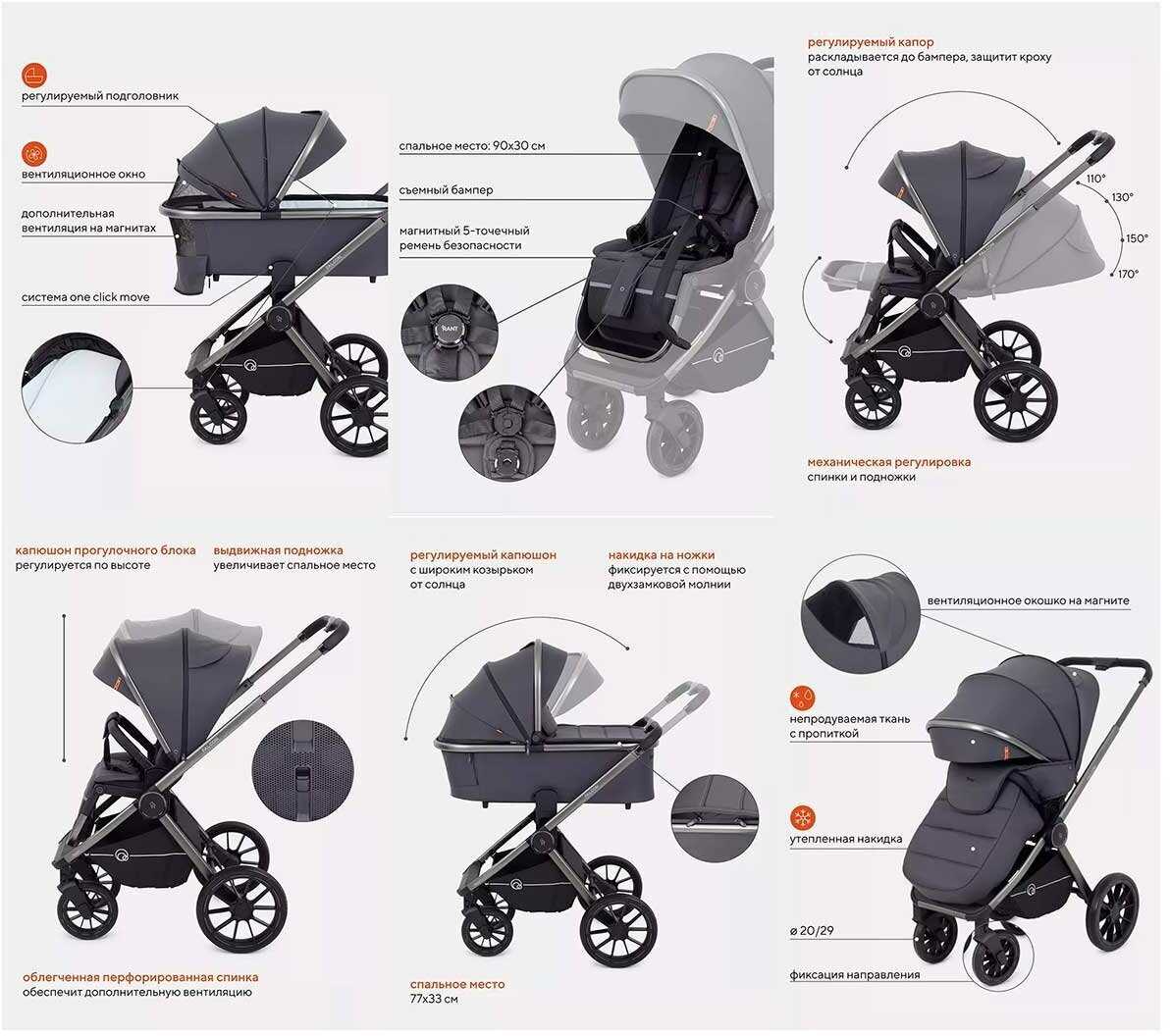 | Особенности прогулочного блока : | бампер, горизонтальное положение спинки, мягкие накладки на ремни, регулировка высоты подножки, регулировка наклона спинки, ремни безопасности, смотровое окно, съемный бампер |