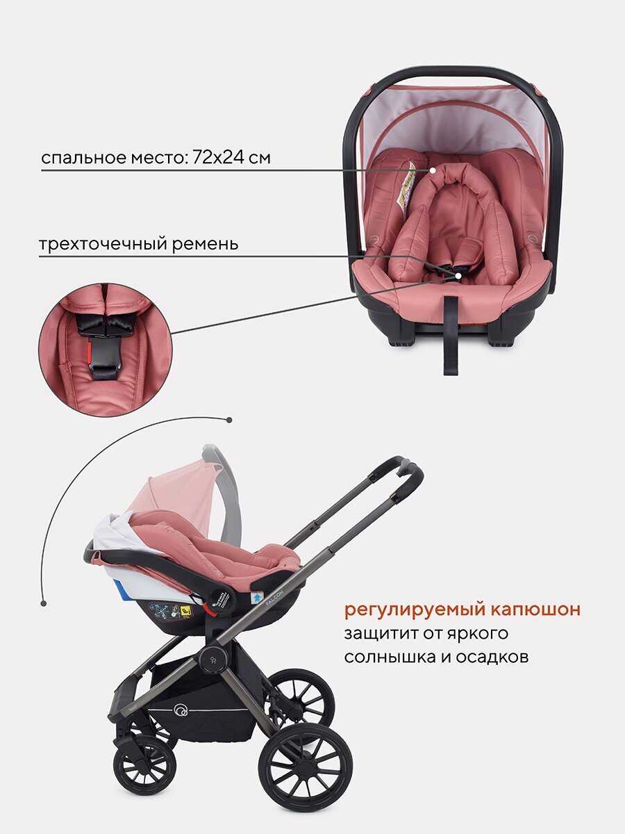 - + Удобно и быстро складывается рама, помещается в багажник, автокресло весит около 5кг без ребёнка, так что тяжело тащить самой, только с помощью мужа, либо брать с собой раму всегда. Люлька удобная, вместительная, есть окошки для вентиляции. Дождевик сильно вонял, но запах прошёл через неделю на балконе. Коляска сама по себе удобная, маневренная, передние колеса проворачиваются на 360°.