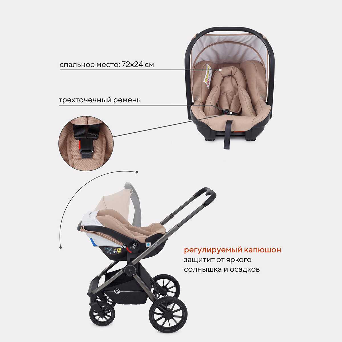 | Особенности капюшона : | вентиляция, капюшон опускается до бампера, материал с УФ-защитой, смотровое окно |