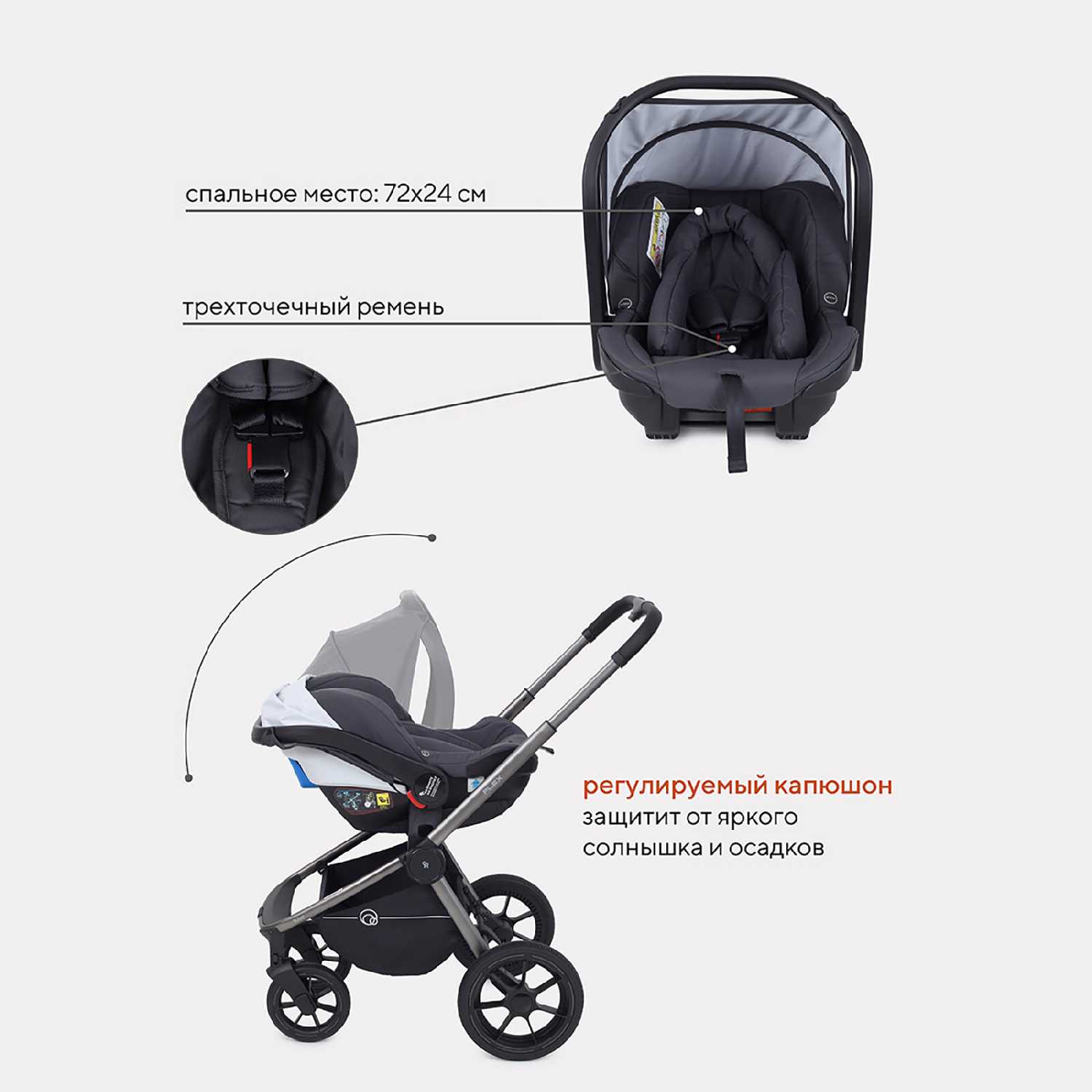 - + отличная коляска, удобная, все продумано, маневренная, не тяжёлая, но и не из самых лёгких, люлька большая, прогулка не знаю пока как по размерам, автокресло небольшое, до пяти месяцев мне кажется максимум, в конце концов просто стильная и красивая, всем очень нравится