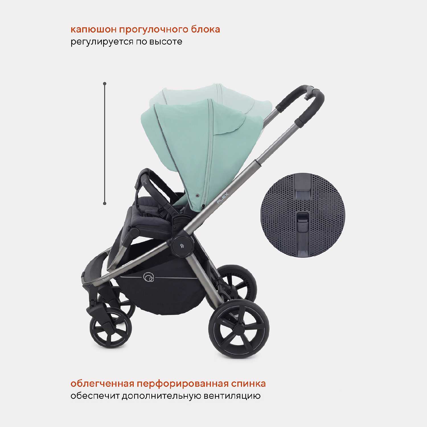 | Особенности шасси : | корзина для покупок, перестановка блока лицом/спиной, регулировка высоты ручки, съемные колеса |