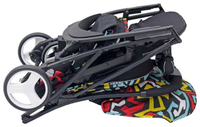- + После коляски 2в1, просто пушинка. Легко складывается/раскладывается. Маневренная, ездит спокойно по магазину с узкими проходами.