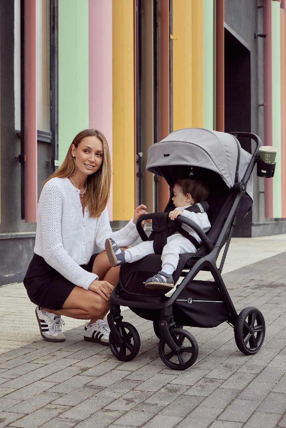 - + Коляска очень стильная, аккуратная, едет плавно, колеса большие, место спальное большое, ручка высокая, для нас удобно, так же +, что есть сеточка, для жаркого лета это супер