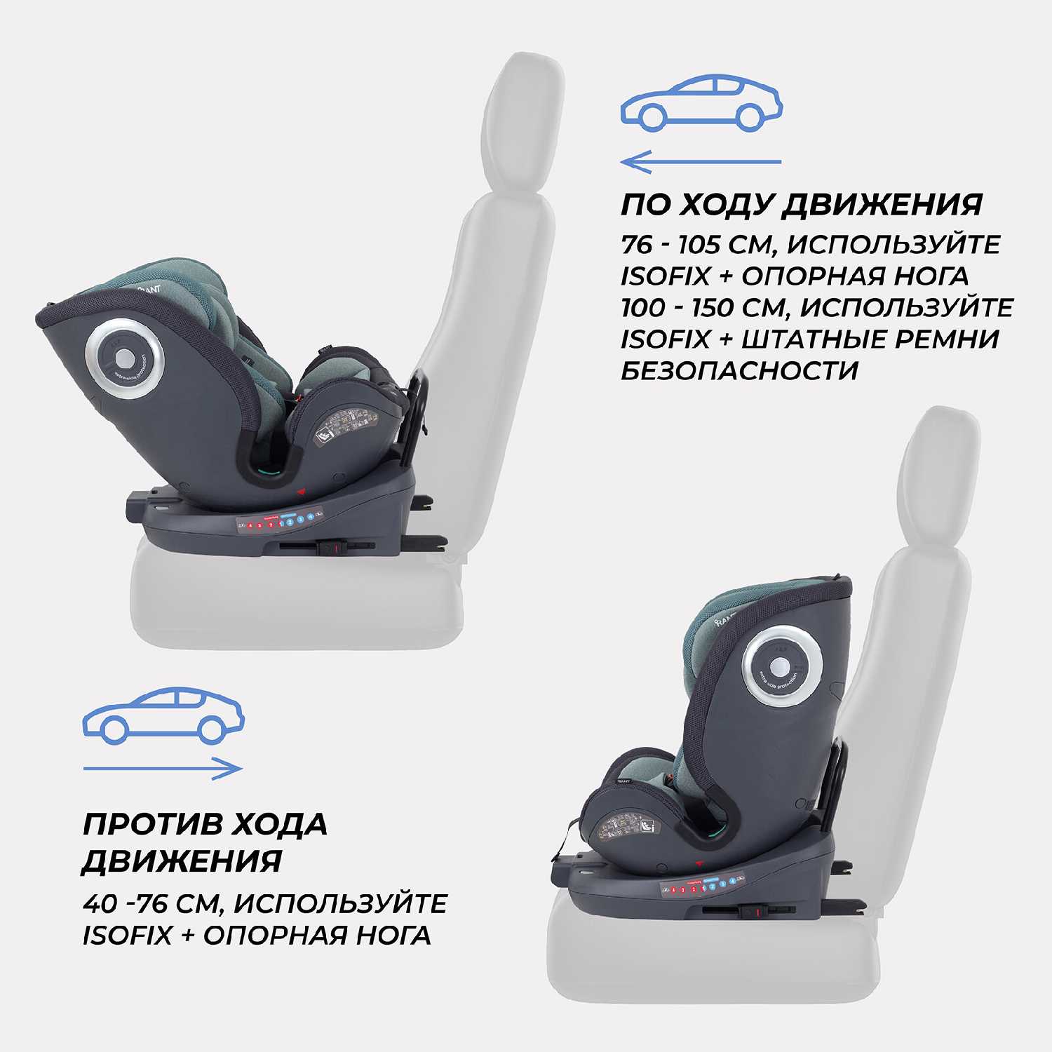- способ установки: спиной или лицом вперед
