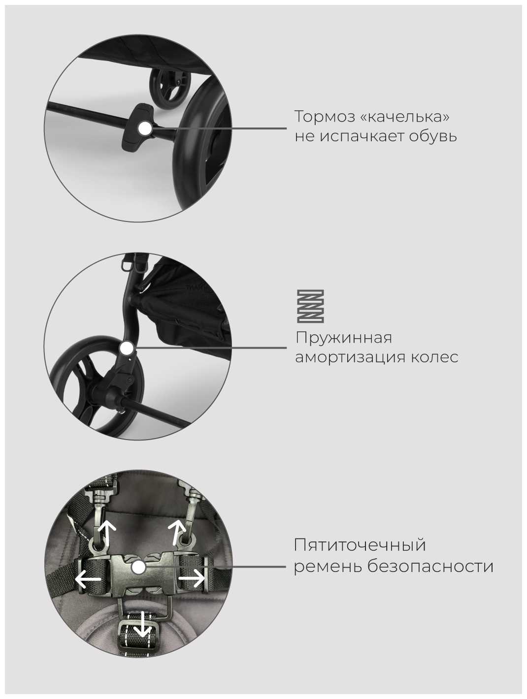 - - Крепления передних колес из гибкого пластика: сгибаются, когда наезжают на препятствие. Приходится приподнимать коляску на всех бордюрах,...