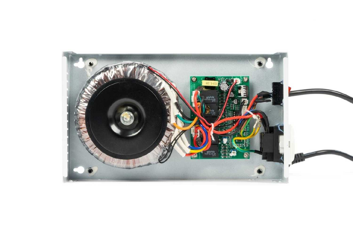 - + Очень внушительный вес, огромный медный трансформатор, надёжные реле с достаточным "запасом" по току, удобные доступы к колодкам под нормальные кольцевые клеммы. Внутренняя коммутация — на проводах 10мм, с некоммутируемыми рабочим нулём, всё сделано очень аккуратно и качественно. Возможность повернуть экран на 90 градусов, и повернуть верхнюю крышку так, чтобы и все показания читались штатно, и надписи были не "вверх ногами". Штатные выступы для горизонтального размещения либо крепления на стену — прекрасно "работают" в качестве кабель-органайзеров.