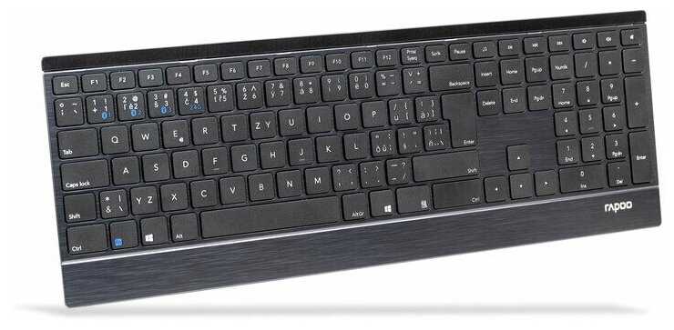 - + Приятное нажатие клавиш. Подключение без проблем. Можно подсоединять к нескольким устройствам и переключаться между ними.