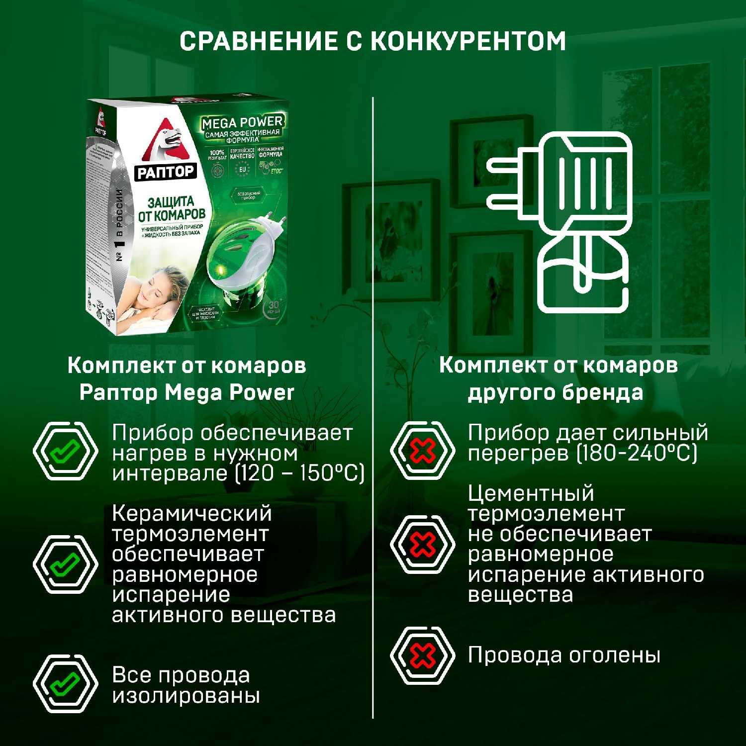 | Подробная комплектация : | комплект от комаров РАПТОР MEGA POWER |