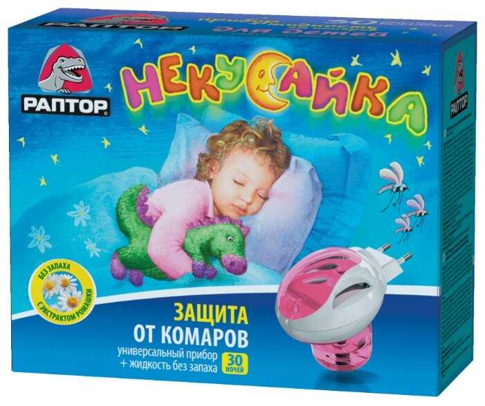 Самое верное средство, которое выручает меня каждый год моих деток от укусов комаров – это «Раптор» Некусайка. У сына аллергия на укусы комаров и без Некусайки лето превращается в сущий ад. Хоть на упаковке и написано, что средство подходит для малышей, я все же включаю фумигатор в комнате, которая примыкает к детской. Этого достаточно, чтобы кровопийцы не залетали в помещение.