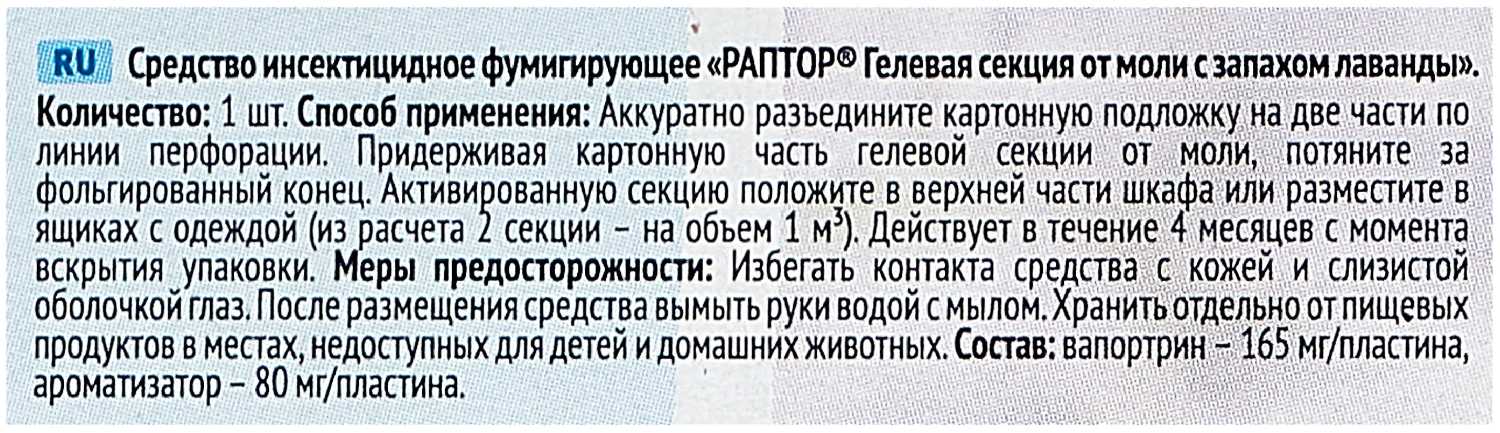 42 отзывов пользователей o Раптор от моли с запахом лаванды и индикатором срока действия