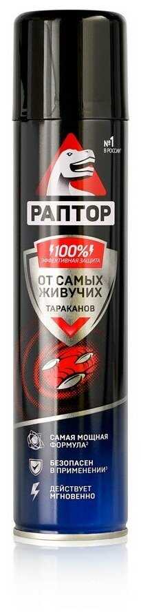 | Подробная комплектация : | Аэрозоль Раптор повышенной эффективности от самых живучих тараканов |