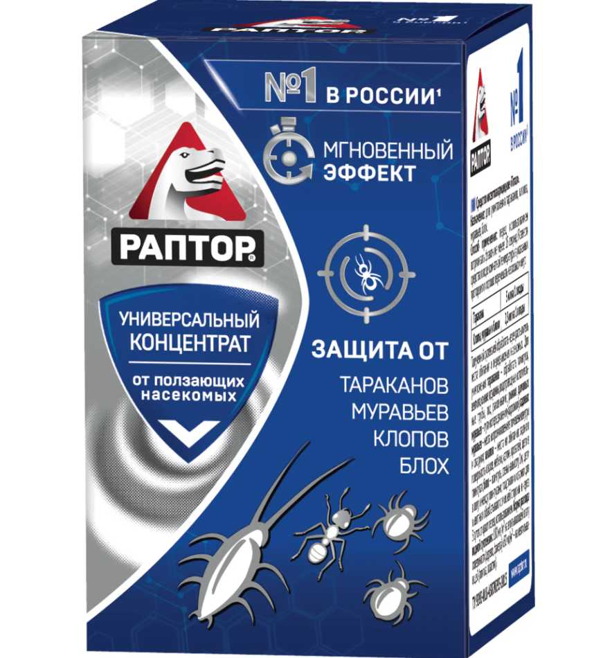 | Подробная комплектация : | Универсальный концентрат от ползающих насекомых Раптор Тотал 50 мл |