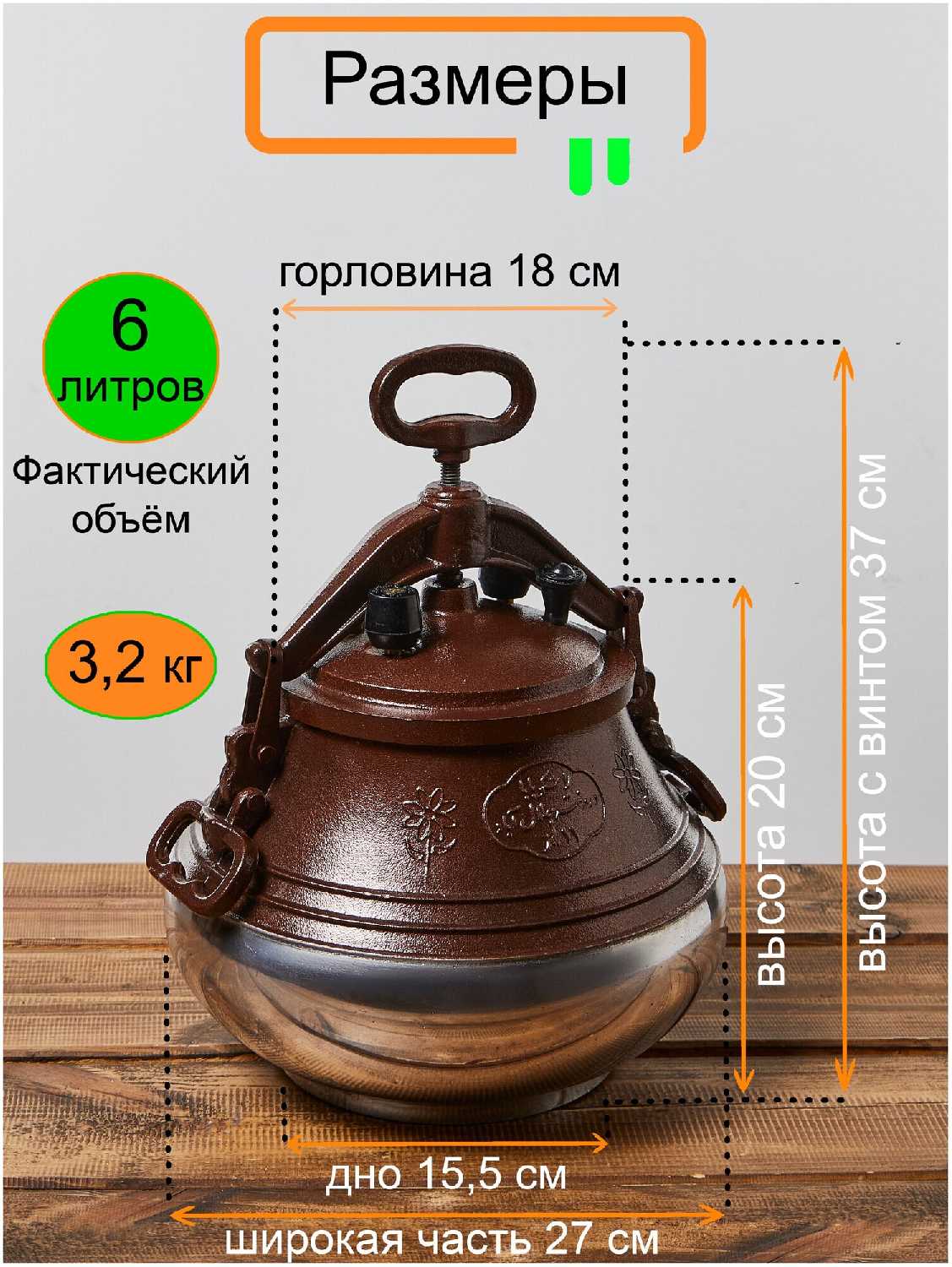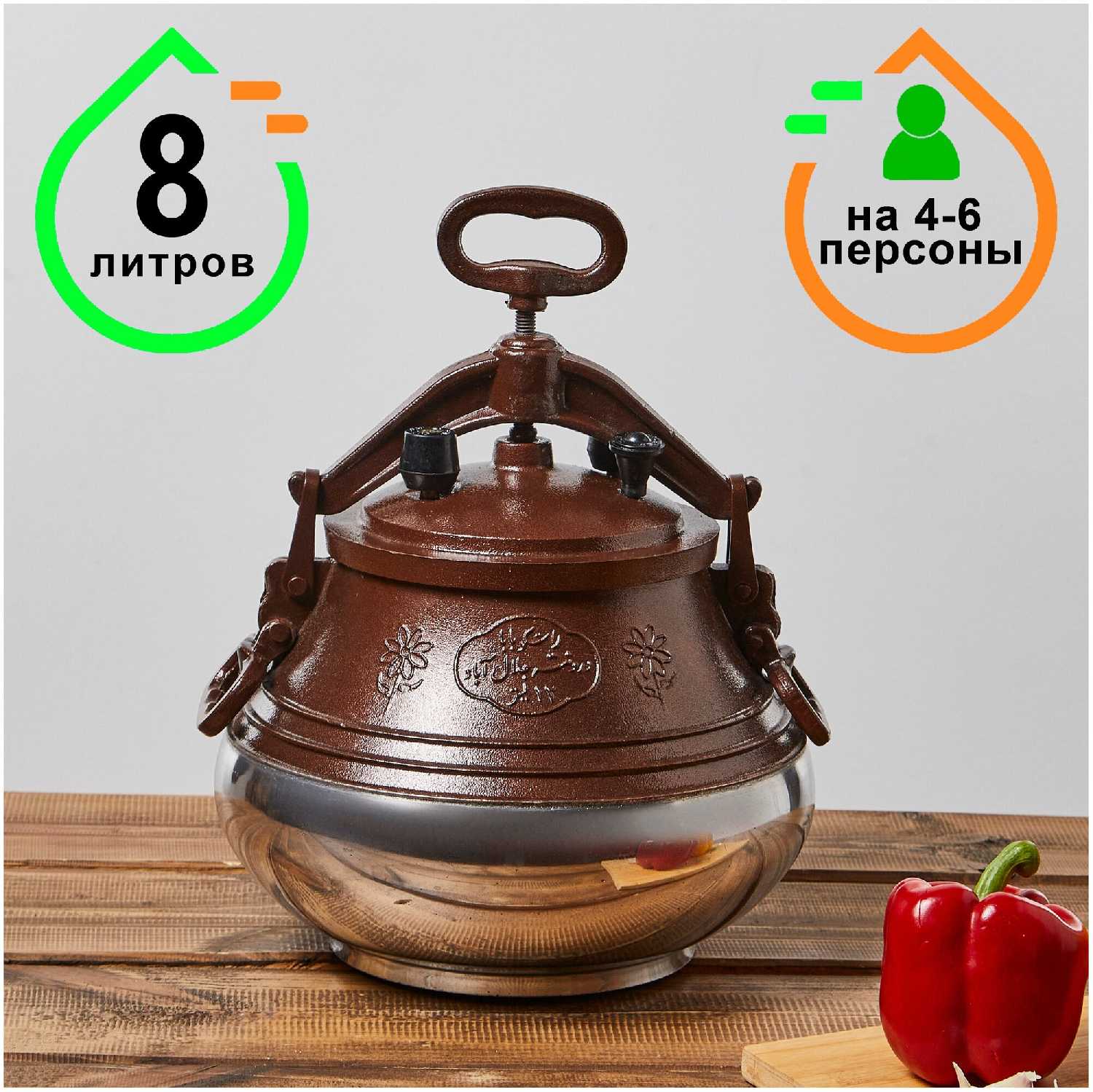 Фактический полезный объем может несколько отличаться от заявленного в характеристиках. Некоторые пользователи отмечают, что казан на 8 литров фактически вмещает около 6 литров, что связано с конструктивными особенностями. Форма казана с расширением в нижней части обеспечивает оптимальное распределение продуктов, поэтому даже при некотором расхождении в объемах вместимость оценивается как достаточная. -