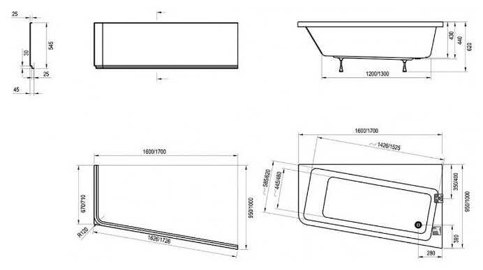 Характеристи RAVAK 10° 160x95 акрил угловая