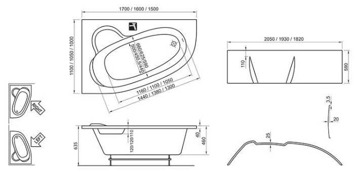 Характеристи RAVAK Asymmetric 160x105 без гидромассажа акрил угловая