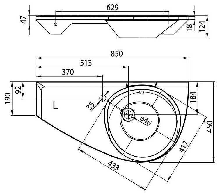 - + долго искали именно такую форму с подходом по диагонали и закругленным краем, цвет чистый белый, глубины вполне достаточно