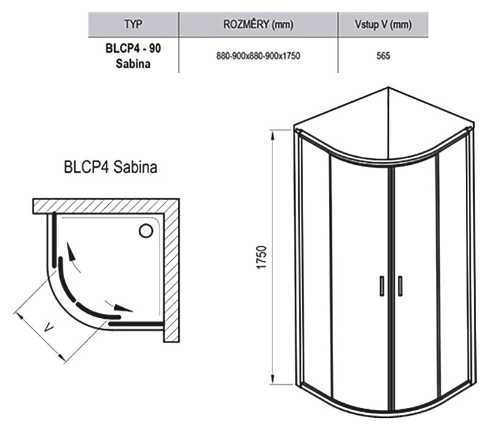 Характеристи RAVAK Blix BLCP4-90 Sabina высокий поддон 90см*90см
