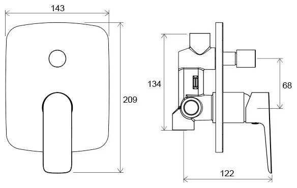 - + Недорогой смеситель для душевой/ванны с 2мя режимами работы.