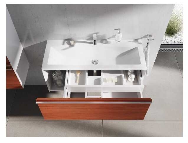 - + Прочный материал, можно подобрать цвет тумбы для раковины под интерьер, необычная форма