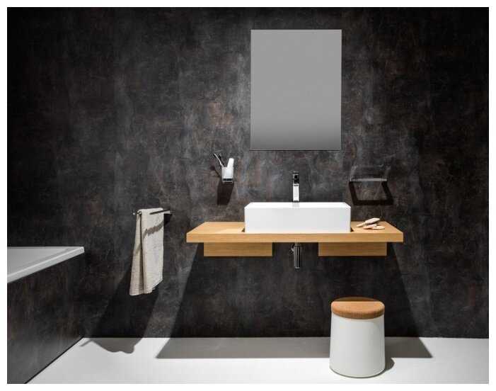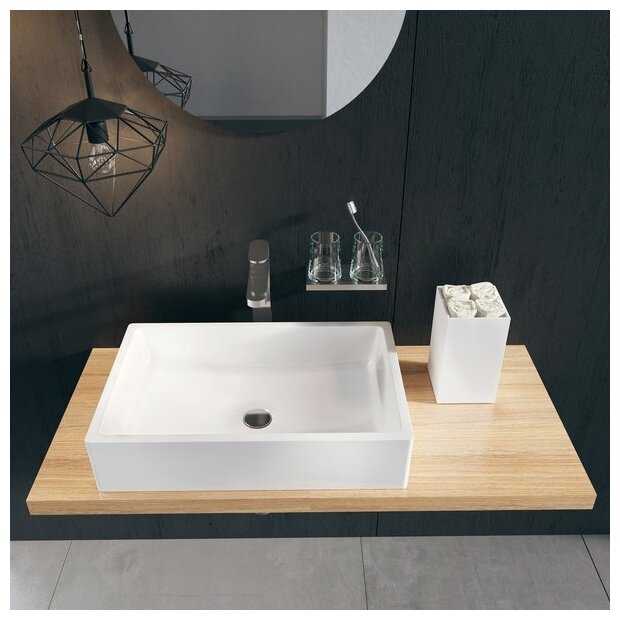 Если постучать по умывальнику, то звук удара как по плитке, а не пластмассовый, первый признак, что в составе много натурального наполнителя. Очень похож на мрамор. Натуральный мрамор легко царапается и боится кислой среды плюс вес - большой, а тут ситуация противоположная, так что купил и пользуюсь. Месяц прошел, а выглядит как новый.
