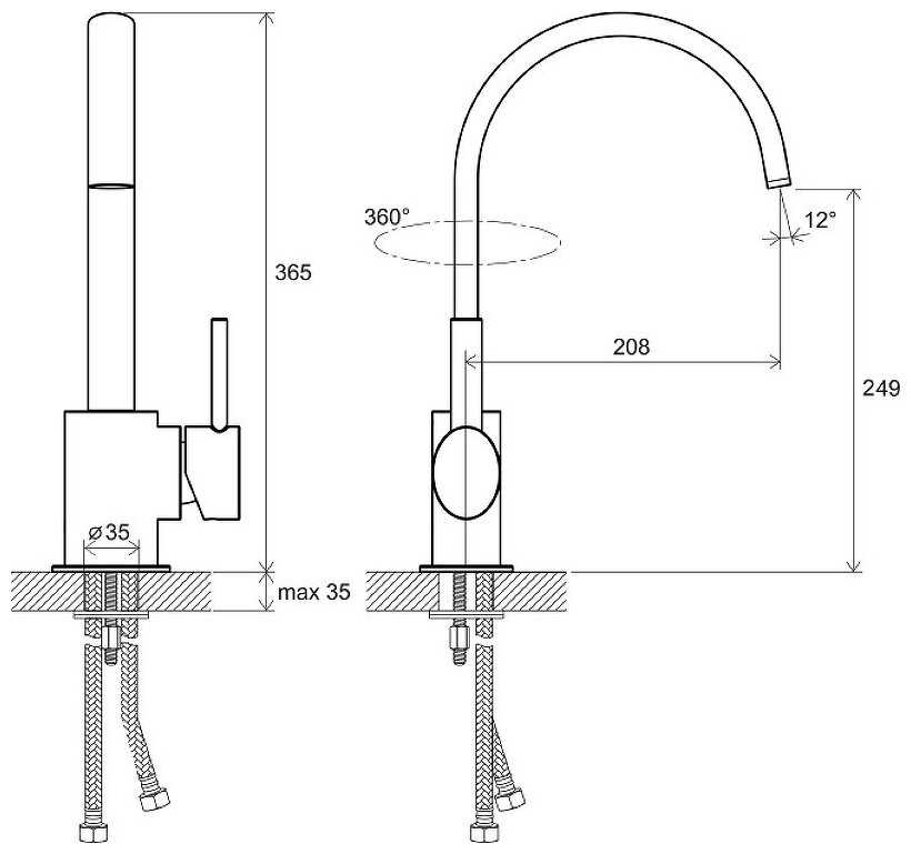 - тип подводки: гибкая