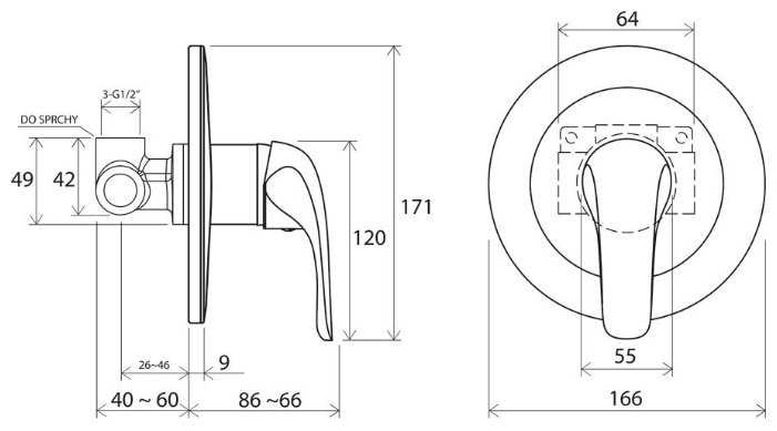 - + Надёжный и стильный смеситель для душевых кабинок.