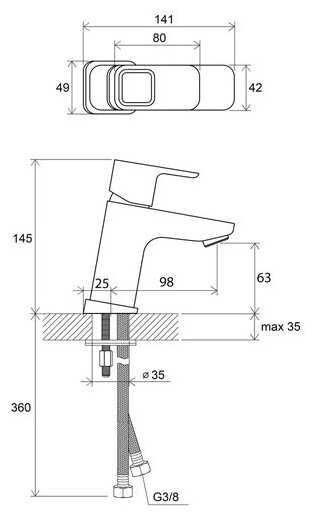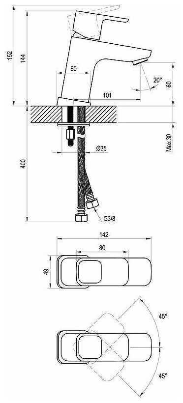- высота излива: 63 мм.
