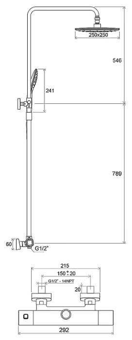 | Дополнительная информация : | высота стойки для душа: 1335 мм, длина верхнего душа: 250 мм, ширина верхнего душа: 250 мм |