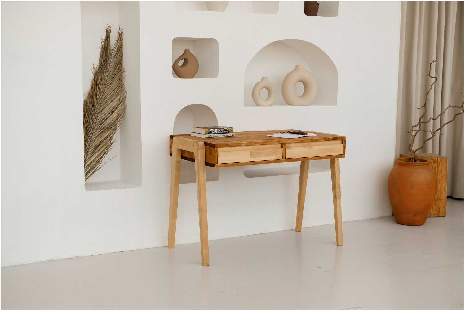 - + Очень стильный стол! отлично вписался в наш скандистиль. Материалы качественные, надёжная склейка, кромка снята, идеально отшлифован, маслом покрыты даже внутренние детали. Огромные выдвижные ящики.