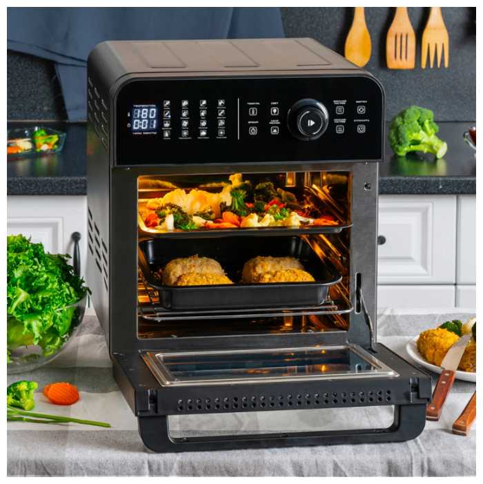 Однако устройство рассчитано на небольшие семьи или порционное приготовление. Объём 12 л позволяет запечь тушку курицы или противень пирога, но для одновременной готовки нескольких блюд придётся докупать аксессуары. Это увеличивает итоговую стоимость, что критикуют пользователи. Кроме того, автоматические программы требуют «ручной настройки»: например, для выпечки температуру нужно снижать на 10–20°C, чтобы избежать подгорания.