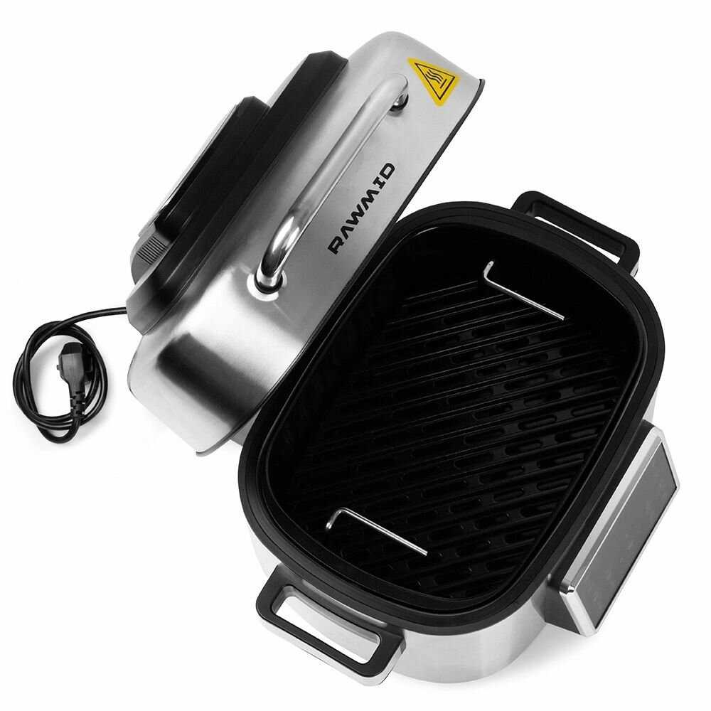 Давно мечтала о гриле, (рассматривала разные модели, но этот понравился больше остальных) и вот приобрела это чудо техники! Прибор прост в использовании, мыть его не составляет труда, т к хорошее покрытие. Самое главное-ЗОЖ, можно без масла готовить! Картофель отменный-мягкий внутри, хрустящий снаружи за 15 минут! (в духовке мясо приготовится, а картофель сырой) Пробовала готовить уже много чего, и рыбу и мясо, сосиски, овощи, котлеты и шашлык получается можно не ходить на улицу)) Никакая мультиварка не сравнится с аэрогрилем! На сковороде теперь жарю только яичницу, и ее я думаю тоже можно здесь приготовить)) Это ни первый у меня прибор от Rawmid, планирую приобрести ещё другую технику, спасибо магазину!