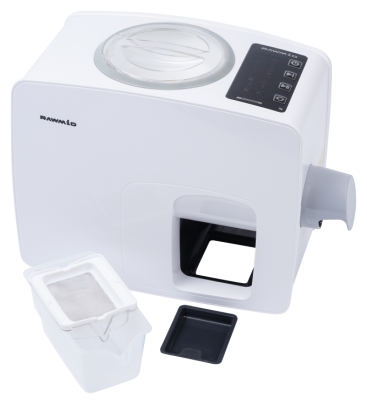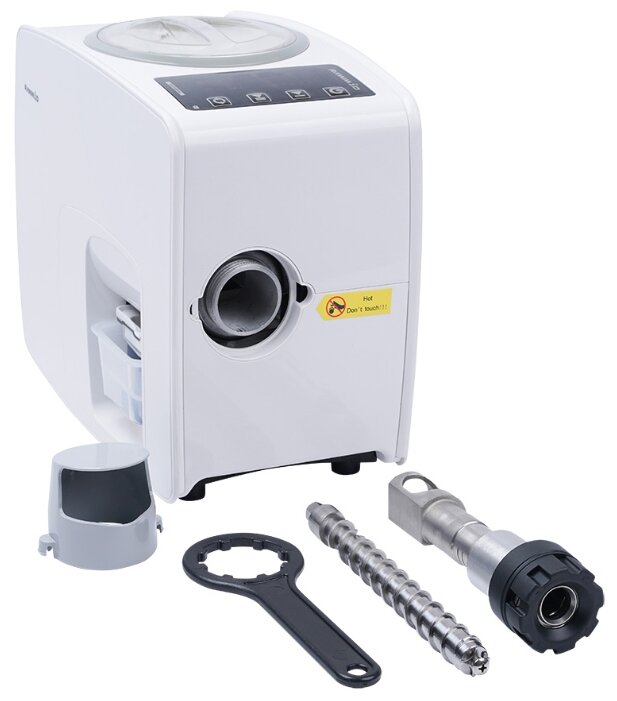 - + Полная комплектация, компактная, в комплекте есть все необходимое для очистки прибора и получения чистого продукта, в целом качество хорошее, без запаха пластика.