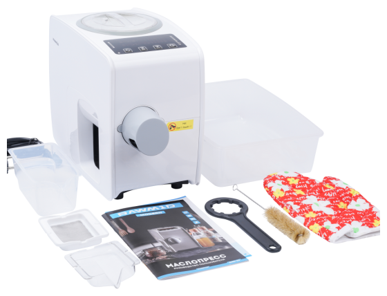 - + Мощный пресс для масла. При этом очень компактный и простой в использовании и обслуживании.